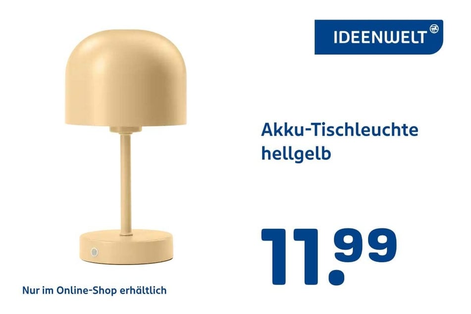 für 3,59 Euro - Akku-Tischleuchte hellgelb