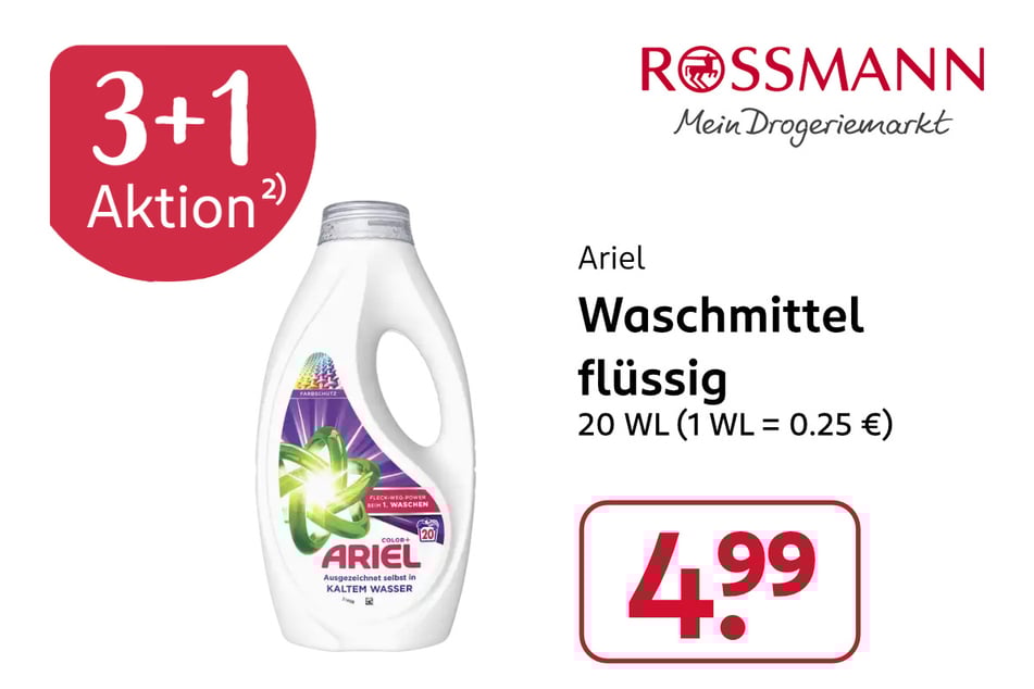 2) 3 x Ariel Waschmittel 15 – 20 WL kaufen – 1 x gratis dazu erhalten. Keine Barauszahlung möglich. Nur 1 x pro Kauf gültig. Bitte selbst auswählen.