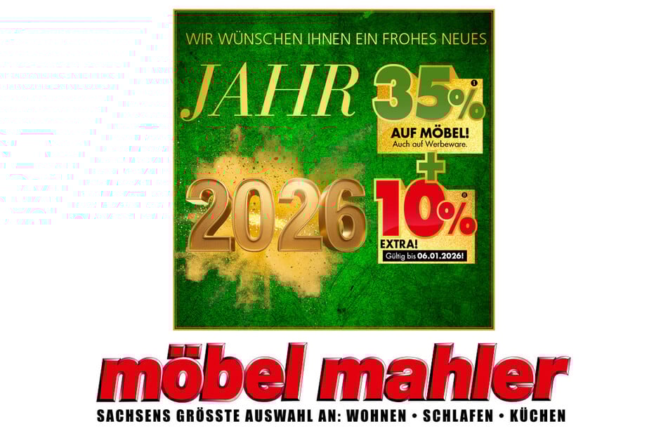 (6) Diesen Betrag verrechnen wir Ihnen bei Vorlage dieses Gutscheins bei Ihrem Möbel Mahler Einkauf ab einem Einkaufswert von 100,-€. Gutschein innerhalb des Aktionszeitraums nur einmal pro Kunde und Kaufvertrag einsetzbar. Ausgenommen von dieser Rabattaktion sind Möbel, Küchen, Matratzen, Gutscheine und Bücher sowie Artikel der Marken ASA Selection, Joop!, Leifheit, Leonardo, Silit, Villeroy & Boch, WMF, Paul Neuhaus und Trio Leuchten. Alle an der Aktion teilnehmenden Artikel in den Prospektbeilagen werden im Aktionszeitraum bereits reduziert angezeigt und gekennzeichnet. Aktuelle Prospekte sind unter www.moebel-mahler-siebenlehn.de einzusehen. Weiterhin ausgenommen sind als Dauertiefpreis gekennzeichnete Artikel. Nicht mit anderen Rabattaktionen kombinierbar. Barauszahlung nicht möglich. Gilt nur für Neuaufträge bis einschließlich 06.01.2026.