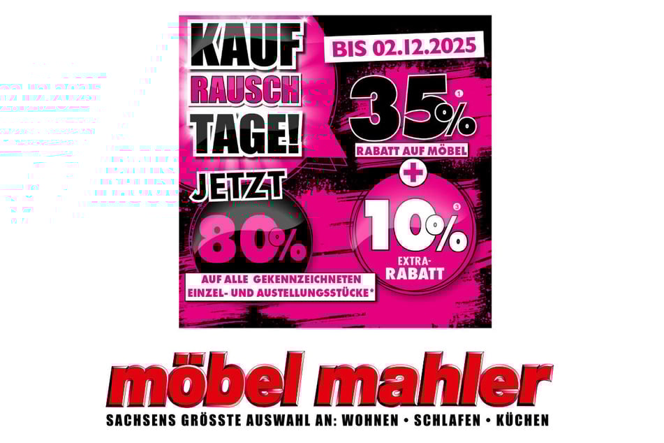 Noch bis Dienstag (2.12.) laufen bei Möbel Mahler die Kaufrauschtage mit genialen Rabatten in vielen Bereichen des Wohnens.