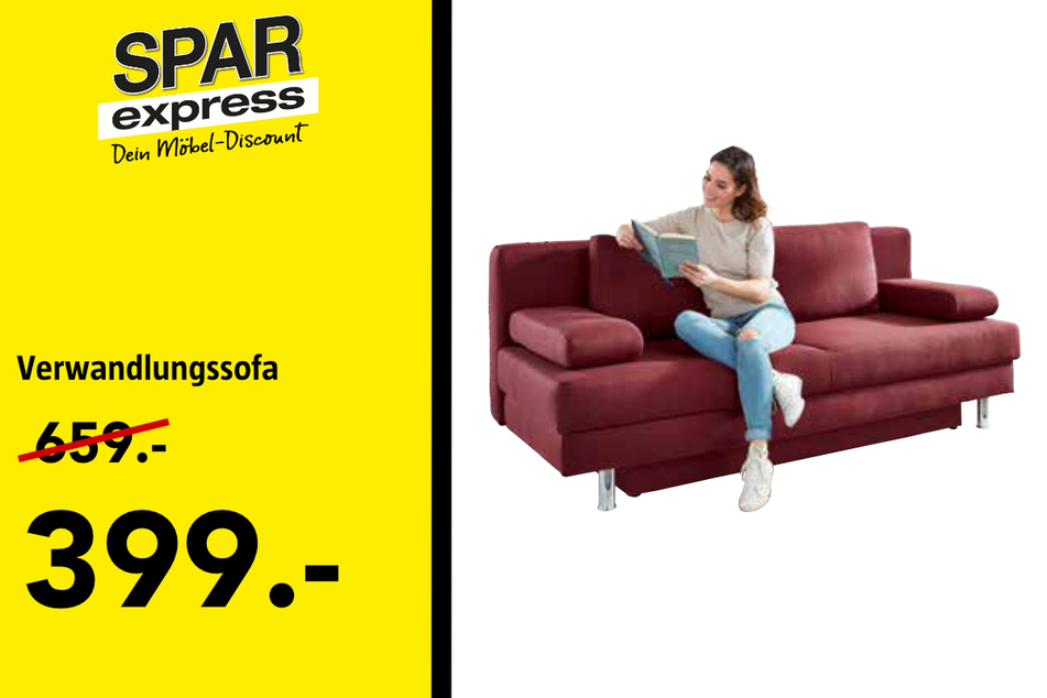 Platzsparend und ein echter Hingucker ist das Verwandlungssofa für nur noch 399 statt 659 Euro.
