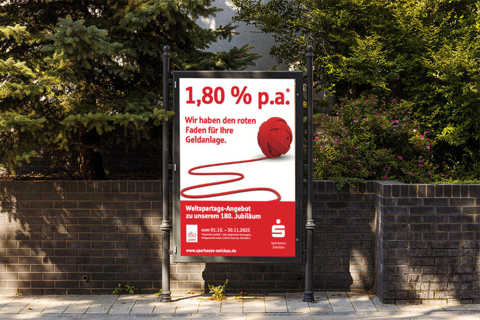 Anlässlich des 180-jährigen Jubiläums der Sparkasse Zwickau gibt's den Sparkassenbrief mit 1,80 Prozent p.a. für Eure Geldeinlage.