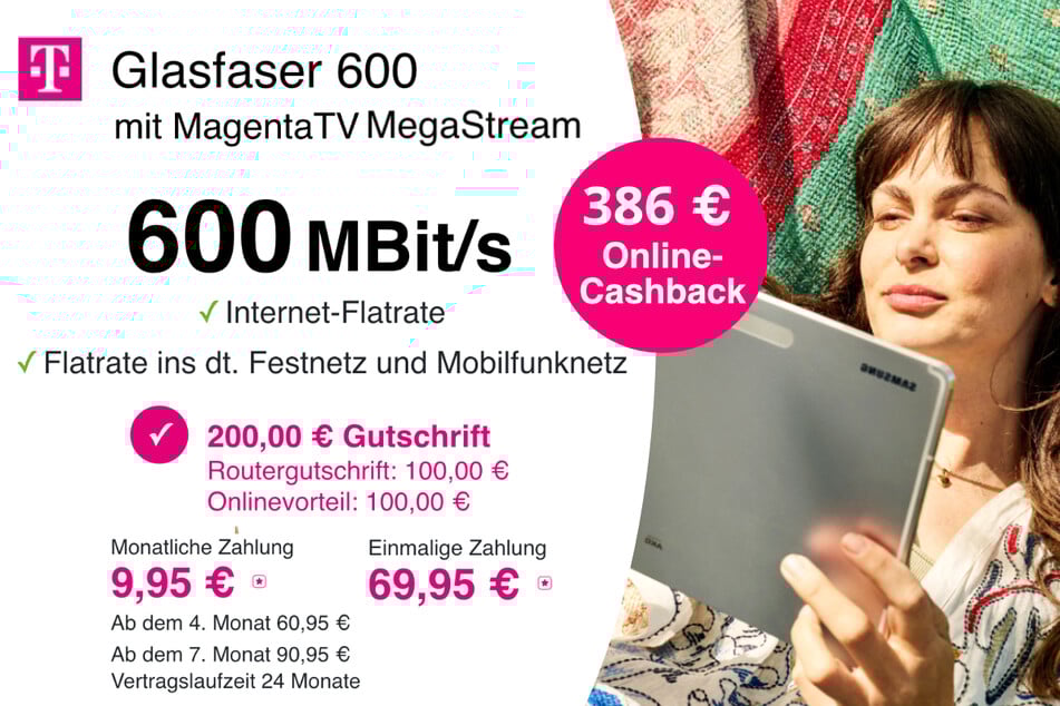 - 9,95 Euro pro Monat - Glasfaser 600 + MagentaTV MegaStream