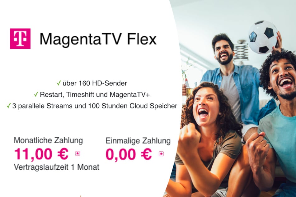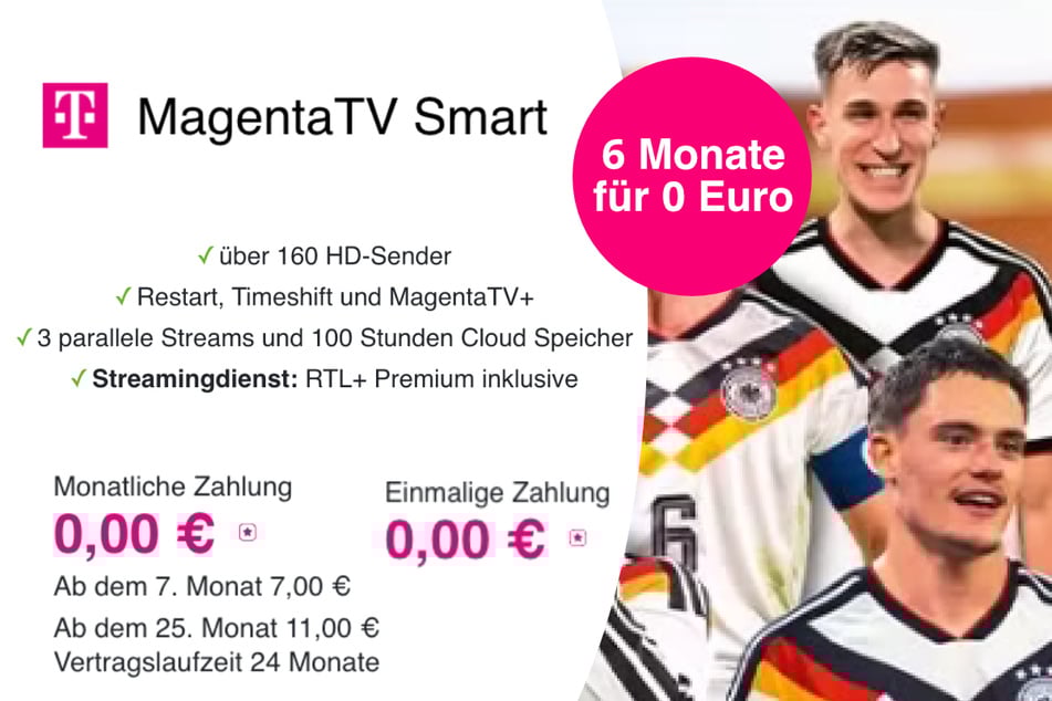 Passend dazu gibt's alle MagentaTV Optionen die ersten 6 Monate für 0 Euro inkl. hoher Ersparnis auf die monatliche Grundgebühr – schon ab 7 Euro monatlich.