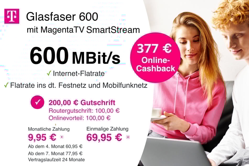 - 9,95 Euro pro Monat - Glasfaser 600 + MagentaTV SmartStream