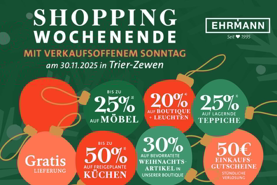 Trier – Shopping-Wochenende ab Freitag (28.11.) bei Möbel Ehrmann in Trier! Hier warten hohe Rabatte, tolle Extras und ein spannendes Programm.