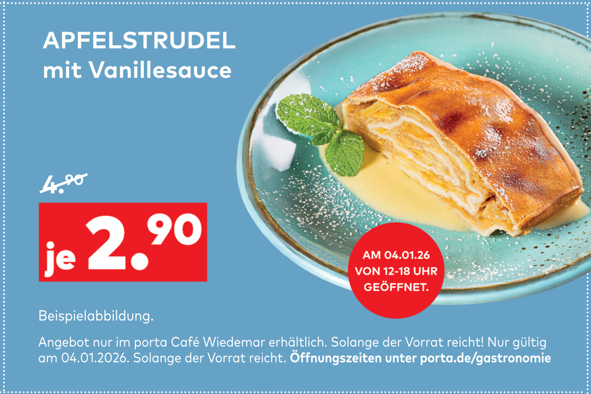Zudem bietet das hauseigene porta Restaurant in Wiedemar einen leckeren Apfelstrudel zum kleinen Preis.