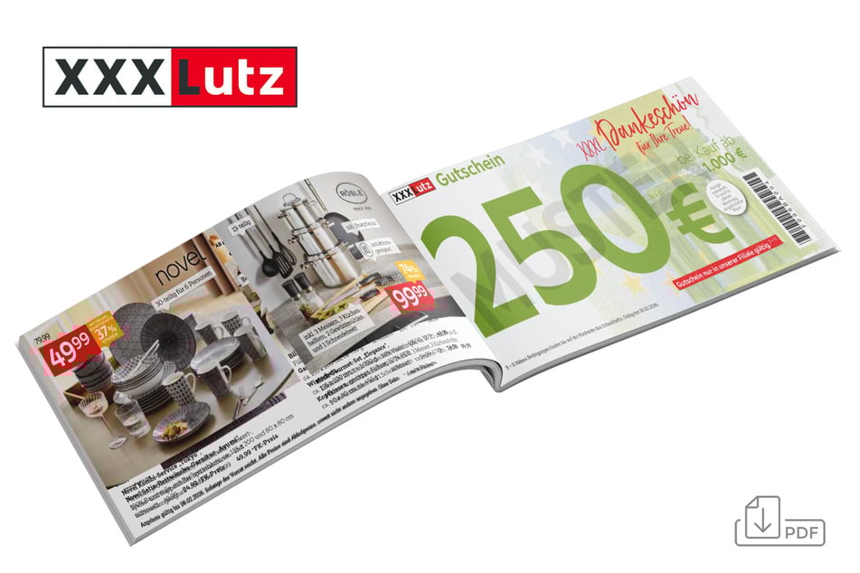 S) Gültig bei Neuaufträgen. Ausgenommen: Artikel in dieser Werbung, in der Ausstellung als „Bestpreis“/„Bester Preis“ gekennzeichnete Artikel, Blomus, Boxxx, Depot, Elle Decoration, JAB, Joop! Teppiche, Leifheit, Musterring, Paidi, Schöner Wohnen, Soehnle, Team 7, Tilo, Tom Tailor Teppiche und Vorwerk, bereits reduzierte Ware, Abverkaufsartikel, Saisonartikel, Badzubehör, Elektro-Kleingeräte, Gutscheinkauf und Bücher. Bei XXXLutz in Blankenburg sind keine Baby-Artikel platziert, aber bestellbar. Keine Barauszahlung.