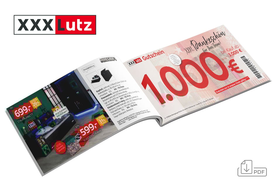Alle angegebenen Maße sind Zirka-Angaben. Maß-, Farb- und Modellabweichungen, Preisirrtümer und Liefermöglichkeiten vorbehalten. Für Druckfehler keine Haftung. Alle Preise sind Abholpreise, soweit nicht anders angegeben. Keine weiteren Nachlässe (insbesondere Gutschein- und Rabattaktionen) auf die in dieser Werbung angebotene Ware möglich. Aktionen und Aktionsbedingungen sowie weitere Informationen finden Sie unter xxxlutz.de/aktionsbedingungen. Artikel im Online Shop immer zum Freundschaftskartenpreis – unabhängig jeglicher Rabattaktionen. Angebote unserer Verkaufspartner/Marktplatz-Verkäufer sind von allen Aktionen ausgenommen. Nur solange Vorrat reicht. Alle Artikel ohne Deko.