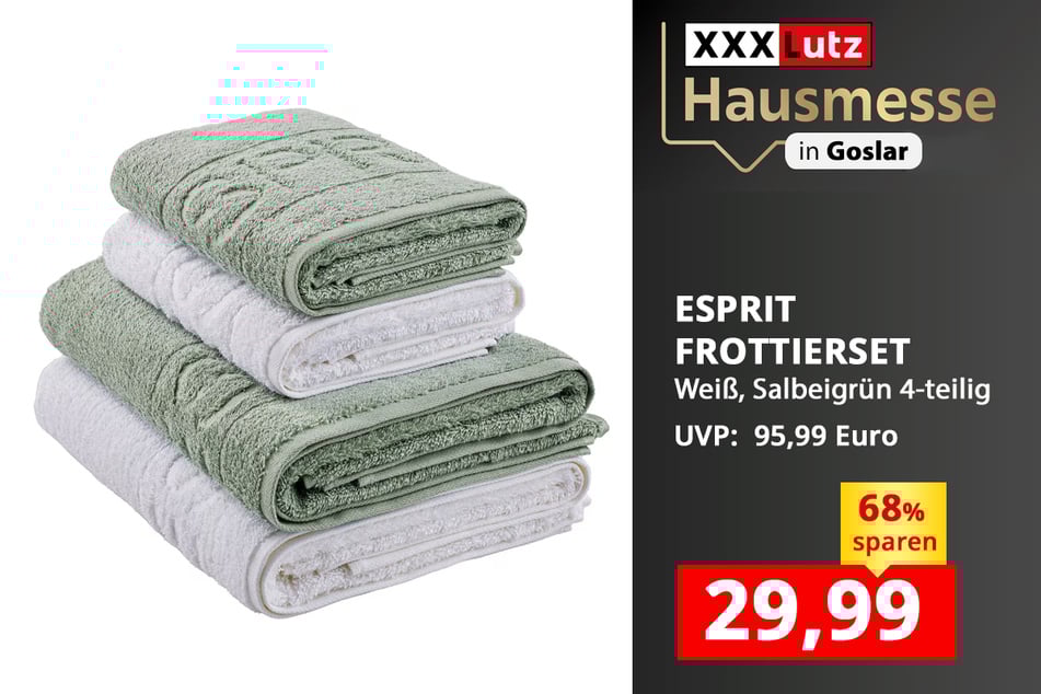 Außerdem warten vor Ort richtig tolle Angebote: Waschbeckenunterschränke für 89,90 Euro, Esprit Frottiersets (4-teilig) für 29,99 statt 95,99 Euro und Bettwäsche für 14,99 statt 39,99 Euro.