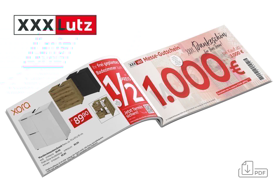 S) Gültig bei Neuaufträgen. Ausgenommen: Artikel in dieser Werbung, in der Ausstellung als „Bestpreis“/„Bester Preis“ gekennzeichnete Artikel, Blomus, Boxxx, Depot, Elle Decoration, JAB, Joop! Teppiche, Leifheit, Musterring, Paidi, Schöner Wohnen, Soehnle, Team 7, Tilo, Tom Tailor Teppiche und Vorwerk, bereits reduzierte Ware, Saisonartikel, Badzubehör, Elektro-Kleingeräte, Gutscheinkauf und Bücher. Bei XXXLutz in Blankenburg keine Baby-Artikel platziert, aber bestellbar. Keine Barauszahlung.