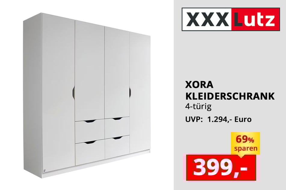 Außerdem warten tollen Angebote. Zum Beispiel Kleiderschränke für 399 statt 1.294 Euro, Boxspringbetten für 499 statt 1.311 Euro, Kopfkissen für 89,90 statt 129 Euro und Besteck-Sets (60-teilig) für 29,99 statt 59,99 Euro.