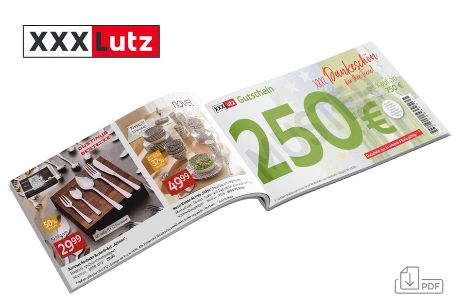 S) Gültig bei Neuaufträgen. Ausgenommen: Artikel in dieser Werbung, in der Ausstellung als „Bestpreis“/„Bester Preis“ gekennzeichnete Artikel, Blomus, Boxxx, Depot, Elle Decoration, JAB, Joop! Teppiche, Leifheit, Musterring, Paidi, Schöner Wohnen, Soehnle, Team 7, Tilo, Tom Tailor Teppiche und Vorwerk, bereits reduzierte Ware, Saisonartikel, Badzubehör, Elektro-Kleingeräte, Gutscheinkauf und Bücher. Bei XXXLutz in Blankenburg keine Baby-Artikel platziert, aber bestellbar. Keine Barauszahlung.