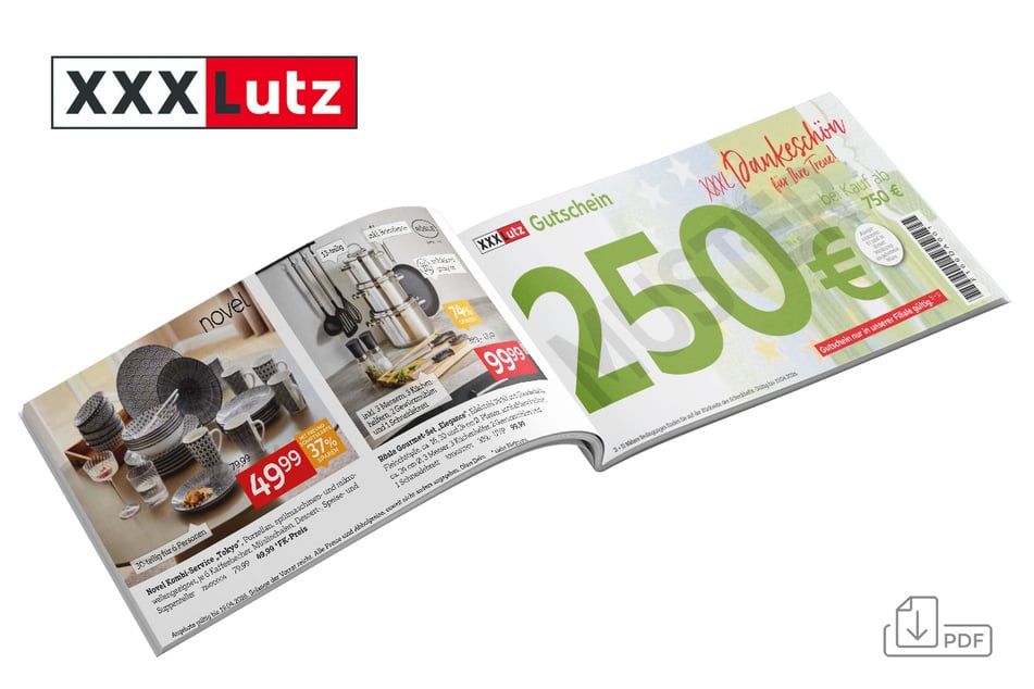 S) Gültig bei Neuaufträgen. Ausgenommen: Artikel in dieser Werbung, in der Ausstellung als „Bestpreis“/„Bester Preis“ gekennzeichnete Artikel, Blomus, Boxxx, Depot, Elle Decoration, JAB, Joop! Teppiche, Leifheit, Musterring, Paidi, Schöner Wohnen, Soehnle, Team 7, Tilo, Tom Tailor Teppiche und Vorwerk, bereits reduzierte Ware, Saisonartikel, Badzubehör, Elektro-Kleingeräte, Gutscheinkauf und Bücher. Bei XXXLutz in Blankenburg keine Baby-Artikel platziert, aber bestellbar. Keine Barauszahlung.