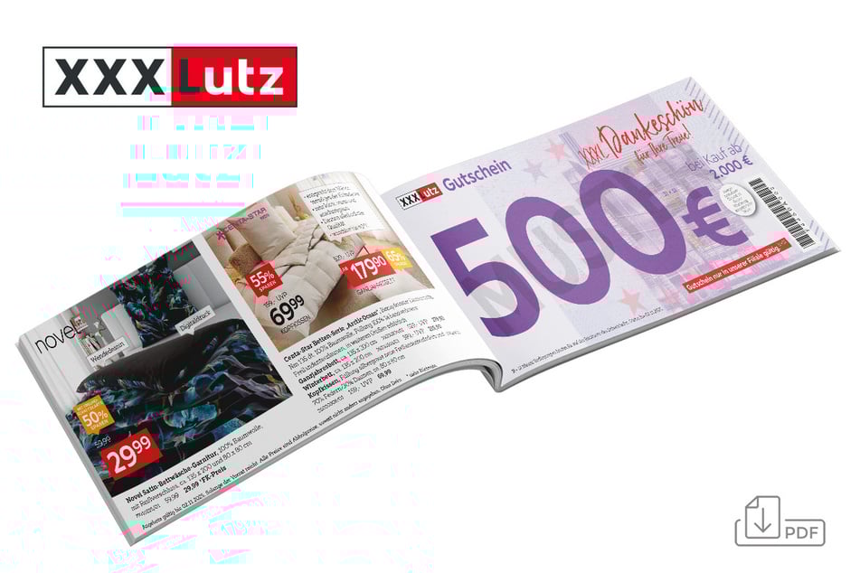 S) Gültig bei Neuaufträgen. Ausgenommen: Artikel in dieser Werbung, in der Ausstellung als „Bestpreis“/„Bester Preis“ gekennzeichnete Artikel, Blomus, Boxxx, Depot, Elle Decoration, JAB, Joop! Teppiche, Leifheit, Musterring, Paidi, Schöner Wohnen, Soehnle, Team 7, Tilo, Tom Tailor Teppiche und Vorwerk, bereits reduzierte Ware, Saisonartikel, Badzubehör, Elektro-Kleingeräte, Gutscheinkauf und Bücher. Bei XXXLutz in Blankenburg keine Baby-Artikel platziert, aber bestellbar. Keine Barauszahlung.