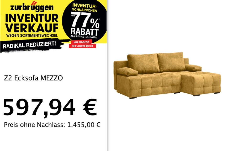 Zurbrüggen – Die Zurbrüggen Wohnzentren starten einen riesigen Inventurverkauf wegen Sortimentswechsel – und geben bis zu 77 Prozent Rabatt!