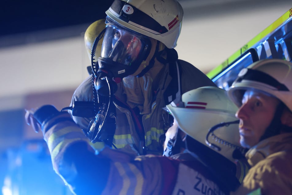 Die Feuerwehr ist mit etwa 60 Einsatzkräften und einer Drehleiter vor Ort. Auch ein Notarzt wurde angefordert.