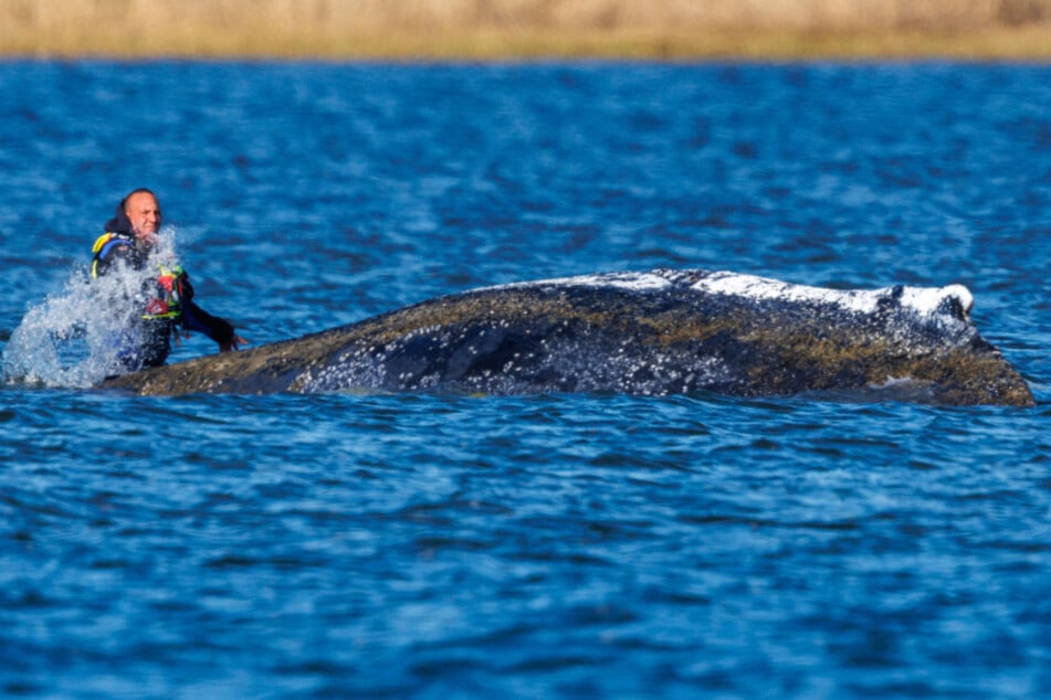 Ein Wal werde komplett vom Wasser getragen, entsprechend werde es "höchste Zeit", ihn vom Weiterschwimmen zu überzeugen, so der Meeresbiologe.