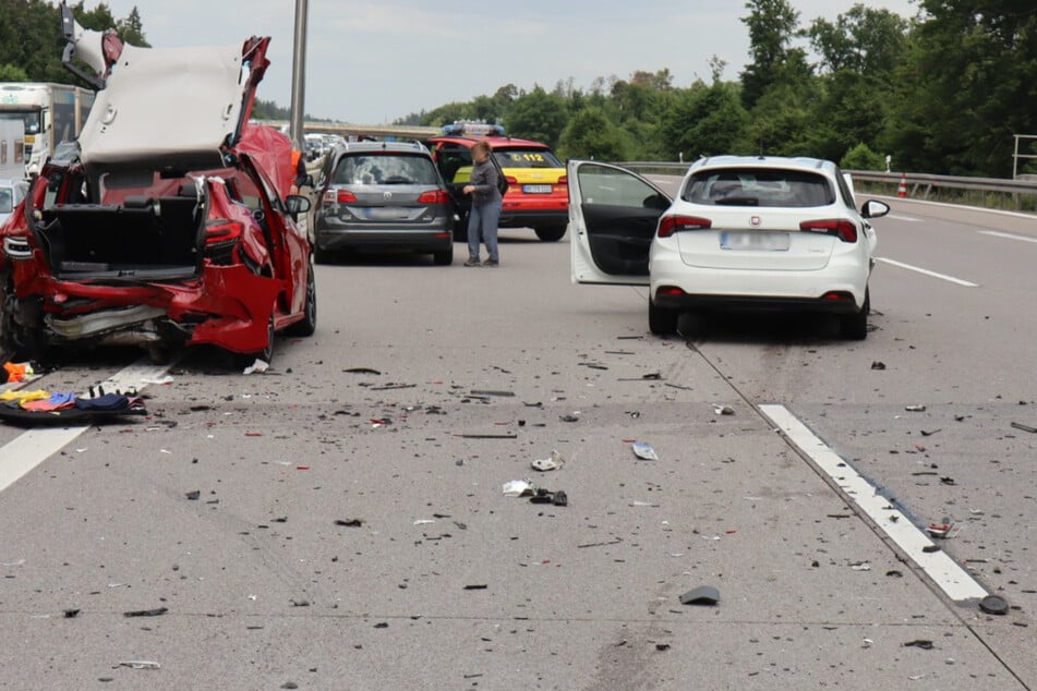 Kronau - Ein schwerer Unfall mit mehreren Fahrzeugen hat am Donnerstagmittag den Verkehr auf der A5 bei Kronau (Landkreis Karlsruhe) zum Erliegen gebracht.