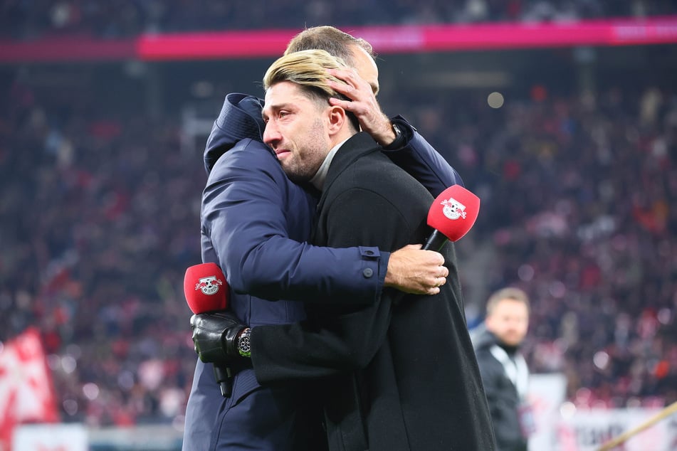 Mit Mikro ausgestattet und Tränen in den Augen lief er auf das Feld. "Jeder Euro den wir für dich ausgegeben haben, war es wert", sagte Oliver Mintzlaff zu Leipzigs Nummer 44.