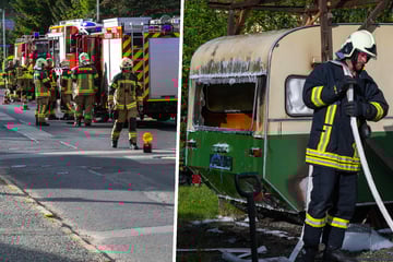 Feuerwehreinsatz in Gartenanlage: Haus in Flammen